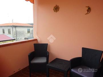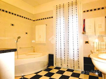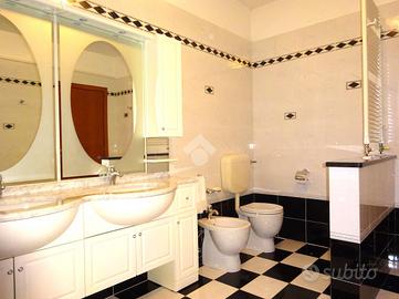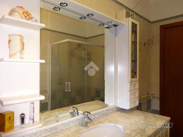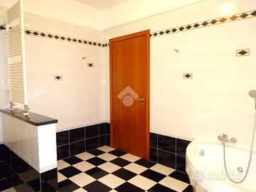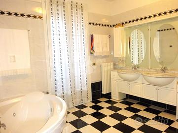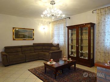 P.P. ingresso indipendente tramite scala esterna, soggiorno, cucina abitabile con accesso ad un primo terrazzo coperto, sala da pranzo, ampio corridoio arredabile, 2 camere da letto matrimoniali, ripostiglio, 2 bagni uno con vasca idromassaggio e l'altro con doccia, entrambi finestrati, uno di essi con accesso ad un secondo terrazzo coperto. Completa la proprietà una mansarda multiuso in cui alloggiano la caldaia e 2 ampi ripostigli. Le finiture sono degli anni novanta in ottimo stato manutentivo. Pavimenti in ceramica nelle zone giorno e nei bagni e parquet nella zona notte , porte in legno, infissi in pvc con doppia camera, zanzariere, porta blindata, impianto di allarme, 5 split e termostati ambienti.