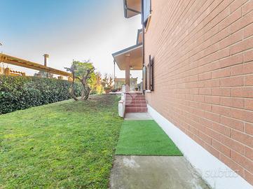 BAURA/VIA PONTEGRADELLA: Immersa nel verde della campagna ferrarese, ma comoda ai servizi, questa grande abitazione indipendente a Baura è la soluzione ideale per chi cerca spazio, privacy e qualità della vita. Libera su quattro lati e circondata da un giardino che regala una vista aperta sulla campagna, la casa accoglie fin dal primo sguardo con il suo grande porticato che abbraccia quasi tutto il perimetro: uno spazio perfetto per vivere l'esterno in ogni stagione. L'accesso carrabile conduce a un garage di grandi dimensioni che può ospitare 3 automobili, collegato internamente alla taverna: un ambiente caldo e conviviale, con camino, zona divani, grande tavolo per cene in compagnia, cucinotto e una stanza aggiuntiva versatile. Da qui si accede anche a una comoda lavanderia finestrata e al collegamento con i piani superiori. L'ingresso pedonale accompagna invece, attraverso una dolce scalinata esterna, al porticato e alla porta principale. All'interno si apre un ingresso elegante che conduce al grande e luminosissimo soggiorno, cuore della casa: due ampie vetrate lo mettono in diretto dialogo con il giardino, mentre gli spazi sono ben organizzati tra zona relax con camino in muratura e marmo e area pranzo affacciata sul verde. Sul medesimo piano troviamo una cucina ampia abitabile e funzionale, con ripostiglio e accesso diretto all'area barbecue esterna, completa di camino e forno per la pizza, ideale per pranzi e cene all'aperto. Completa il piano un bagno finestrato con doccia. Prendendo le eleganti scale in legno, e separato da una raffinata porta a vetri che lascia filtrare la luce, si accede al grande disimpegno della zona notte, che ospita tre camere da letto e due grandi bagni finestrati: uno con doccia e uno con vasca idromassaggio. La camera padronale gode dell'accesso a un ampio balcone, mentre le altre due camere, oggi arredate come singole, offrono comunque metrature generose. All'ultimo piano una mansarda abitabile aggiunge ulteriore spazio e fl