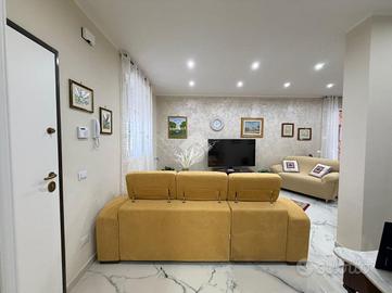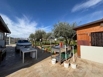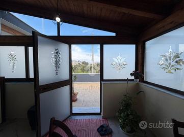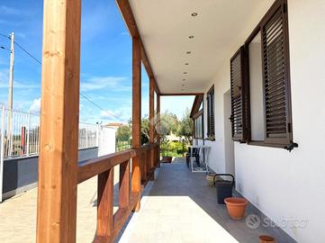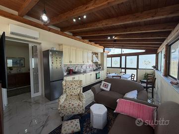 Un delizioso portico ci accoglie all'interno della villa, dove troviamo un ampio salotto, attigua una splendida veranda con cucina.