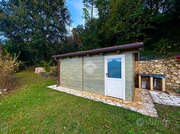 Il giardino a prato inglese e terrazzato, offre alberi di grande fusto, un gazebo in ferro battuto e un locale ricovero attrezzi di circa 20 mq.