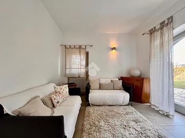 La proprietà si sviluppa su un unico livello e comprende un luminoso soggiorno con grandi vetrate e un affaccio sul giardino di proprietà, da cui si sviluppa un'ampia sala da pranzo con cucina open space.