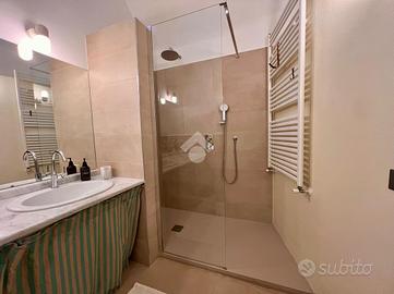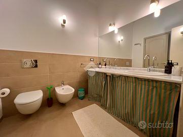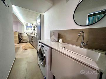 Il bagno, con piatto doccia, dispone di finestra ed è preceduto da una zona lavanderia con lavabo e lavatrice, adiacente ad un ripostiglio.