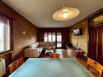 L'ingresso mostra la zona giorno divisa tra la cucina luminosa e il salotto spazioso rivestito in sughero ideale per l'isolamento sonoro e termico, ideale per momenti conviviali; collegati da una terrazza abitabile con vista.
