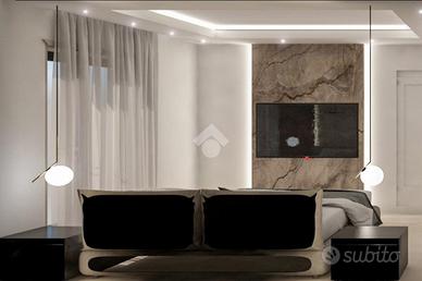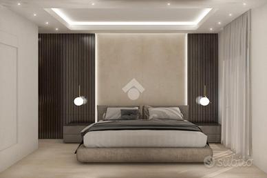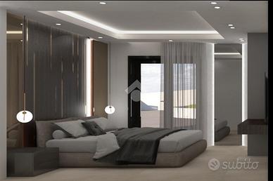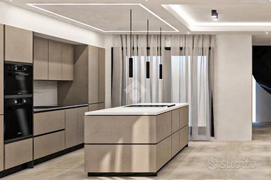 L'ingresso principale conduce al piano terra, un ambiente ampio e accogliente di circa 104 mq, dove il grande soggiorno con angolo cottura, caratterizzato da splendide superfici vetrate e spazi aperti, crea una zona living di forte impatto, luminosa e perfettamente distribuita. Sullo stesso livello si trovano due camere matrimoniali, entrambe dotate di bagno privato: la prima si sviluppa su circa 18 mq, mentre la seconda, più ampia, ne occupa circa 22, offrendo comfort e privacy a chi la abita. Completa il piano un ulteriore bagno di servizio, concepito per garantire massima praticità agli spazi giorno.
