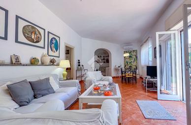Villa indipendente con accesso diretto alla spiaggia - Un'oasi verde sul mare a Formia, Via Mar Tirreno In una delle posizioni più esclusive e riservate di Formia, proponiamo in vendita una villa singola indipendente, con dependance, immersa nel verde, con accesso diretto alla spiaggia, un plus raro e prezioso per chi sogna il mare a pochi passi da casa. La proprietà si sviluppa su due livelli, circondata da una corte privata e da un ampio giardino in parte pavimentato e in parte giardinato, ideale per vivere gli spazi esterni in ogni stagione tra relax e convivialità. Al piano terra, l'ingresso conduce a un doppio soggiorno, climatizzato, dove la zona camino si presenta come una vera e propria stanza raccolta e intima, perfetta per creare un'atmosfera calda nei mesi più freschi. La zona giorno è completata da una cucina abitabile, due comodi ripostigli e un bagno finestrato. Salendo al primo piano troviamo la zona notte, composta da quattro camere da letto e due bagni. La camera padronale, dotata di bagno privato, ha accesso diretto a un terrazzo privato che affaccia sul verde, regalando una sensazione di tranquillità e armonia. Anche un'altra camera dispone di un secondo terrazzo, offrendo ulteriori spazi all'aperto da vivere in totale riservatezza. Il secondo bagno, spazioso e funzionale, è dotato di vasca. A rendere ancora più confortevole questo piano, un disimpegno climatizzato che distribuisce elegantemente gli ambienti, oltre a un ulteriore ripostiglio. All'esterno, la villa è circondata da un giardino di 2541mq, curato in ogni dettaglio che avvolge l'intera proprietà, alternando zone verdi a spazi pavimentati, pensati per godere appieno della vita all'aria aperta. Completa la soluzione una dependance indipendente di 23.50mq calpestabili, climatizzata con annesso porticato di 9mq, composta da un ampio soggiorno, un cucinotto e un bagno finestrato, perfetta come alloggio per ospiti, studio privato o area relax. Ma il vero valore aggiunto è l'accesso dir