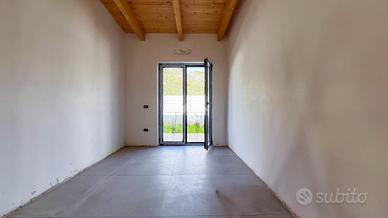 Gli interni, di circa 110 mq di superficie calpestabile, sono stati progettati per dialogare con l'esterno in modo naturale e continuo. Il soggiorno con angolo cottura, ampio e luminoso, è valorizzato da grandi porte-finestre che aprono lo spazio verso il porticato. La zona notte ospita tre camere matrimoniali e due bagni moderni, con un'organizzazione degli spazi pensata per offrire comfort, equilibrio e privacy. Completa la proprietà un pratico ambiente ripostiglio/lavanderia.