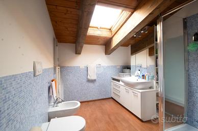 Al primo piano trova spazio una seconda unità abitativa, attualmente adibita a taverna, composta da una zona giorno open space con angolo cottura e terrazzino abitabile, una camera matrimoniale con bagno privato, una cameretta e un ulteriore servizio igienico. Una soluzione ideale per ospiti, familiari o per chi desidera un ambiente indipendente.