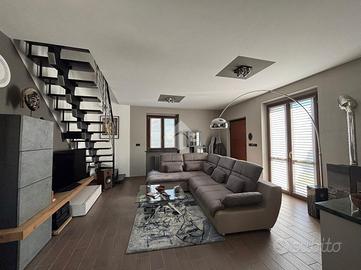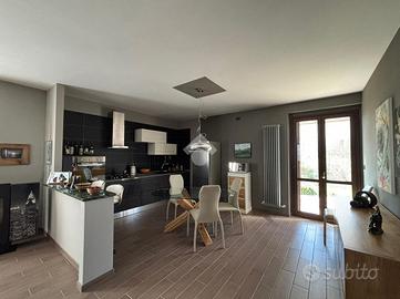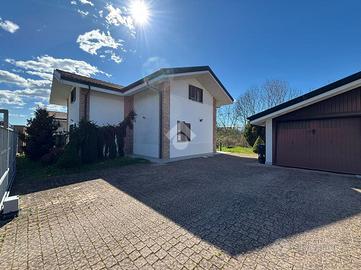 Costruita nel 2007, si sviluppa su due livelli abitativi, offrendo una comoda distribuzione degli spazi. L'ingresso living accoglie un luminoso soggiorno, ideale per momenti di relax e convivialità. La cucina, separata da un muretto, è spaziosa e funzionale, perfetta per chi ama cucinare. Sullo stesso piano una camera ed il primo bagno con doccia. La zona notte al piano superiore, comprende tre camere da letto, e un secondo bagno, garantendo comfort e privacy per tutta la famiglia. La villa è circondata da un giardino privato, che ospita un box doppio e offre uno spazio esterno per attività all'aperto e momenti di svago. La costruzione recente assicura buone prestazioni energetiche e finiture moderne. Situata in una zona residenziale, la proprietà combina tranquillità e vicinanza ai principali servizi del paese.