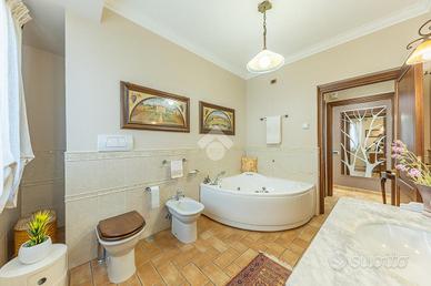 A pochi minuti da Frosinone, precisamente a Ripi, proponiamo in vendita una meravigliosa villa che coniuga comfort moderno, eleganza architettonica e un contesto naturale di grande fascino. L'immobile, costruito nel 2004, si sviluppa su quattro livelli ed è completamente recintato, offrendo privacy assoluta. Varcata la soglia, si viene accolti da un ampio salone con camino che fa da cuore pulsante alla zona giorno, rifinito con parquet di pregio che accompagna lo sguardo verso la cucina, funzionale e conviviale. La zona notte comprende una camera matrimoniale, una camera armadio/spogliatoio e uno studio riservato, oltre a due bagni, uno dei quali impreziosito dalle raffinate ceramiche artigianali di Vietri e l'altro in mosaico Bisazza. Al primo piano si apre un ambiente sorprendente: una sala cinema privata con angolo cottura e spazi accoglienti per serate all'insegna del relax e dell'intrattenimento. Completano il piano due camere da letto, un bagno e due sottotetti. l piano S1 troviamo un appartamento indipendente rifinito in cotto completo di cucina, salone con camino, palestra, camera ospiti, lavanderia e due bagni. Il livello S2 include garage doppio, ulteriore lavanderia, bagno e locale tecnico. Ogni ambiente interno è stato progettato per offrire il massimo della tecnologia e del comfort: riscaldamento con due caldaie Cosmogas in acciaio, sistema di ricircolo energetico per l'efficienza termica, gestione della temperatura stanza per stanza con app Honeywell, aria condizionata Daikin con controllo da smartphone, impianto di addolcimento acqua Culligan, autoclave con pompa inverter e impianto d'allarme Bentel con pannelli touch e gestione remota. Il videocitofono Urmet consente di rispondere da remoto a ogni chiamata. Questa villa non è solo una casa, ma un vero rifugio, un luogo dove vivere ogni giorno con stile, sicurezza e totale armonia con la natura. Il fiore all'occhiello di questa proprietà è l'area esterna: un giardino arricchito da piante mediterran...