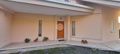 La proprietà è totalmente recintata e l'accesso carrabile risulta protetto da un cancello carrabile con apertura automatizzata con comando a distanza. Superato il cancello d'ingresso ci troviamo direttamente nel piazzale pavimentato antistante uno dei 2 ingressi di cui la casa dispone.