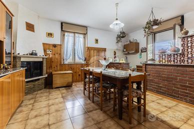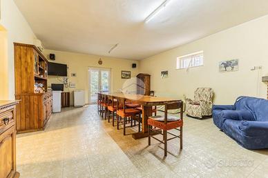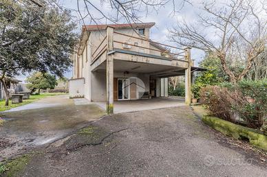 Proponiamo in vendita una villa singola indipendente su due livelli con terreno . Al piano terra la proprietà è circondata da una corte pavimentata con portico dal quale si accede ad un'ampia taverna con camino, cucina , bagno e garage. Tramite una scala interna si accede al primo piano che ospita la parte abitativa principale: una cucina abitabile con affaccio su balcone, un soggiorno spazioso con secondo balcone, tre camere da letto e due bagni, di cui uno con vasca e accesso diretto a un terrazzo privato.