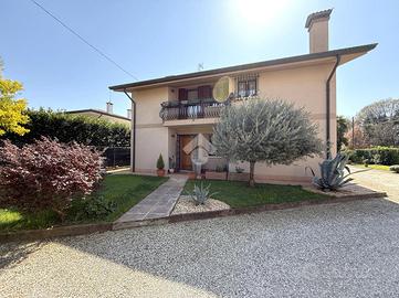 Galliera Veneta, comoda al centro paese, proponiamo villa singola con giardino. La soluzione, posizionata nelle strette vicinanze del centro paese, è comoda per raggiungere i servizi per la quotidianità quali: supermercato, farmacia, panificio, bar, pasticceria, banca, uffici comunali e ufficio postale, raggiungibili anche senza l'utilizzo dell'auto. A breve distanza, la storica Villa Imperiale Cappello, con il suo immenso parco verde ad uso pubblico. L'abitazione, sviluppata su due piani fuori terra, possiede spazi abitativi decisamente ampi. Questi spazi consento ad ognuno di trovare il proprio angolo di felicità nel contesto familiare. L'ingresso ci conduce tramite la scalinata in granito al piano primo, quest' ultimo controsoffittato, migliorando l'isolamento termico e donando dinamicità agli ambienti. Apre la zona giorno, ampiamente finestrata, climatizzata, con living e angolo cottura disposti nel modo più armonioso. Accesso diretto al terrazzo coperto di pertinenza. Il corridoio di disimpegno conduce al reparto notte, climatizzato, con tre spaziose camere da letto, di cui due matrimoniali e una doppia. Completano il piano il bagno finestrato con vasca e ripostiglio, anch'esso finestrato. Il piano primo risulta essere pavimentato interamente in legno e si presenta in condizioni ottimali. Al piano terra si trovano diversi vani accessori, tra cui spaziosa lavanderia/CT finestrata con box doccia, garage doppio in lunghezza, dispensa e ripostiglio. L'abitazione gode di una esposizione totale, libera su quattro lati. Tende parasole esterne al piano primo e inferriate al piano terra, zanzariere presenti ovunque. Esternamente, giardino privato ad uso esclusivo della proprietà, lato Nord e lato Sud.