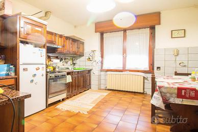 Piano terreno - Una luminosa zona giorno, una cucina abitabile e una zona notte ben distribuita, composta da due ampie camere da letto e dal bagno padronale finestrato.