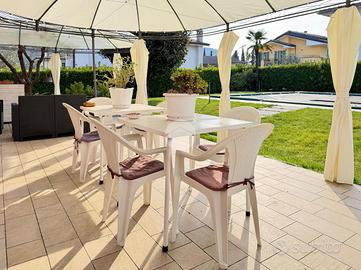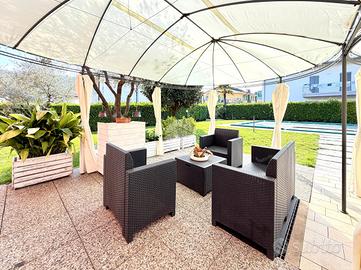 Villa singola con piscina - ideale come B&B o residenza di pregio - Garda (VR) In posizione tranquilla e riservata, zona interna di Garda, proponiamo villa singola di ampia metratura con giardino privato e piscina di 50 mq, perfetta sia come residenza esclusiva sia come struttura ricettiva.La proprietà dispone di 8 posti auto, di cui 2 coperti, e si sviluppa su più livelli, con una distribuzione degli spazi estremamente funzionale. Composizione interna: Piano Terra Trilocale indipendente. Appartamento padronale composto da: cucina abitabile, sala da pranzo, soggiorno, camera matrimoniale con bagno privato Piano Primo Trilocale indipendente. Ulteriori 3 camere da letto, ciascuna con bagno privato.Ogni unità è dotata di balcone o terrazzo indipendente con affaccio diretto sulla piscina, garantendo privacy e comfort per ogni ospite o nucleo abitativo. Piano Interrato (circa 130 mq): sala colazioni, cucina, lavanderia, deposito attrezzature-locale tecnico piscina, bagno, centrale termica, cantina. Dal piano interrato si accede direttamente al giardino tramite scala interna. Plus dell'immobile Utilizzata per anni come B&B, con spazi e distribuzione già ottimizzati per l'attività Ristrutturazione e ampliamento nel 2014 Cappotto termico integrale Impianto fotovoltaico (6KW) Classe energetica B, con possibilità di raggiungere la classe A tramite sostituzione dell'attuale caldaia Ideale per: Continuare l'attività di Bed & Breakfast / struttura ricettiva Realizzare una villa multifamiliare Abitazione privata di prestigio con dependance Una soluzione unica nel suo genere, a pochi minuti dal Lago di Garda ma lontana dal traffico del lungolago, perfetta per chi cerca tranquillità, spazio e redditività.