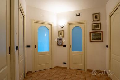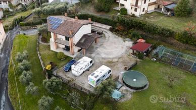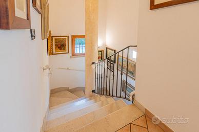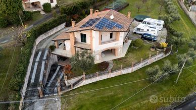 VILLA SINGOLA SU LOTTO 4600 MQ COSA SAPERE SULL'IMMOBILE Immersa nella tranquillità di Soprazocco e circondata da un ampio lotto privato di 4.600 mq, questa villa singola - edificata nel 2001 e ottimamente conservata - rappresenta una soluzione ideale per chi desidera vivere nel verde senza rinunciare alla comodità dei servizi. La proprietà comprende anche un bosco di circa 800 mq e offre una superficie commerciale di 515 mq distribuita su tre livelli. L'ingresso al piano terra avviene attraverso un elegante portico che introduce a un soggiorno particolarmente luminoso, arricchito da ampie aperture verso il giardino. La cucina, separata e funzionale, è completata da un comodo locale dispensa/deposito. Dal soggiorno si raggiungono inoltre l'antibagno e un bagno finestrato con sanitari in ceramica. Una raffinata scala in marmo conduce alla zona notte, dove un disimpegno centrale dà accesso a tre camere da letto di generose dimensioni e a due bagni finestrati: uno con vasca idromassaggio e l'altro con doccia. Un grande balcone collega due delle camere e percorre tutto il lato dell'abitazione, offrendo una piacevole vista sul verde. Le finiture moderne conferiscono al piano un'atmosfera elegante e attuale. Al piano interrato troviamo un ampio locale ideale come taverna, affiancato da un servizio/lavanderia, da una seconda cucina e da un vano pluriuso perfetto anche come camera ospiti. Completano il livello una stanza blindata e un'autorimessa di 76 mq con centrale termica e scala esterna che collega il box all'ingresso dell'abitazione. Il comfort è garantito dal riscaldamento a pavimento nella zona giorno e notte, mentre al piano interrato sono presenti termoconvettori. L'impianto, alimentato a metano, è valorizzato da pannelli fotovoltaici da 6 kWh, contribuendo in modo significativo all'efficienza energetica. Gli spazi esterni permettono di parcheggiare diverse autovetture e includono una piscina semi-interrata e una zona barbecue, ideale per momenti di re