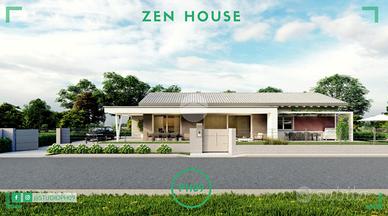 Il progetto presentato è composto da ampia zona giorno, cucina abitabile con accesso al portico, 4 camere da letto, 2 bagni ed una lavanderia. Garage doppio per larghezza collegato all'abitazione. Giardino privato che circonda la casa sui 4 lati.