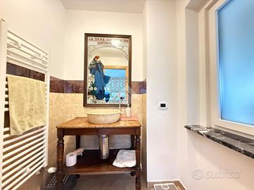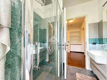 Salendo al piano superiore si sviluppa la zona notte, composta da quattro camere da letto, di cui tre matrimoniali, e due bagni, uno con doccia e l'altro dotato di vasca idromassaggio.