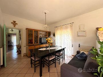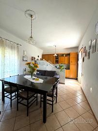 Al piano terra: ampio ingresso su salotto con scala di collegamento al piano superiore, salone doppio, soggiorno con antistante piccolo portico, corridoio, ampia cucina abitabile, camera da letto e bagno finestrato con doccia a terra.