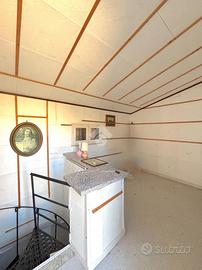 Il primo piano ospita un luminoso e spazioso salone, cucina abitabile con balcone, camera matrimoniale con balcone e due camerette, di cui una con soppalco e l'altra dotata di bagno interno finestrato con doccia. È presente inoltre un secondo bagno finestrato, anch'esso con doccia. Dal disimpegno, una scala a chiocciola conduce alla mansarda, con accesso ad un bel terrazzo panoramico di circa 60 mq.