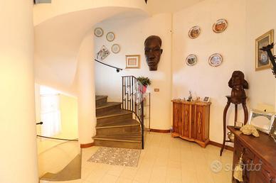 VIA MONTEGIOVETTI - PROPRIETA' ESCLUSIVA IMMERSA NEL VERDE. Proponiamo in vendita una villa unifamiliare singola di circa 530 mq con 1 ettaro di parco, attualmente divisa in due unità distinte, ma con semplice modalità di ripristino allo stato originario, che si presenta come: Al piano terra troviamo un accogliente ingresso che presenta la scala che comunica internamente ai 3 piani della villa, l'accesso alla prima zona giorno composta da un ampio e luminoso salone con camino, cucina a vista con uscita sul giardino, una prima zona dedicata al pernottamento comprensiva di 4 camere da letto, 3 bagni di cui due direttamente in camera; Al primo piano, completamente ristrutturato nel 2015, si presenta una seconda, accogliente e luminosa zona giorno composta da: soggiorno con angolo cottura, angolo tv con camino, 2 camere da letto, bagno ed antibagno con doccia walk-in. Inoltre dal soggiorno si accede al terrazzo dell'abitazione di 50mq con vista mare e sull'intero parco che circonda la proprietà. Infine, al piano semi interrato, si presenta una spaziosa sala hobby/da pranzo con angolo cottura, cantina con accesso dedicato, una camera matrimoniale, un bagno di servizio e annessa uscita sul giardino. L'immobile, residenza storica della nota attrice Anita Ekberg, protagonista del celebre film ' LA DOLCE VITA ', si presenta ristrutturato al piano primo e terrazzo, mentre il resto della proprietà necessita lavori di ammodernamento e manutenzione. E' presente il sistema di condizionamento dell'aria e riscaldamento con caldaia, una serra e percorso dedicato alle vetture che circonda l'abitazione. E' già presente l'impianto di allarme Verisure. La posizione è un altro punto di forza: la villa è inserita in un parco privato di 10000mq finemente curato ed alberato, con vari spazi dedicati per ogni esigenza. Questa casa rappresenta la soluzione ideale per una o due famiglie che desiderano vivere in un ambiente tranquillo, di prestigio, esclusivo e nella totale riservatezza