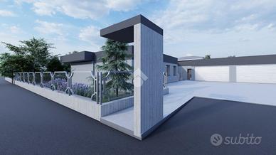 GHISALBA: In una zona residenziale di pregio circondata da altre villette è in realizzazione la costruzione di 4 ville che comporranno una nuova RESIDENZA. Situate in via Verona a Ghisalba, sono progettate in stile moderno e lineare adattandosi alle esigenze familiari grazie a spazi definiti e ben studiati. Il progetto prevede la realizzazione di 4 VILLE MONOPIANO con box all'americana ed esterno esclusivo. VILLA D L'abitazione sarà distribuita su un unico piano e misura circa 100 mq. Composizione: ampia zona giorno openspace con cucina a vista, tre camere da letto (una matrimoniale e due singole), due bagni e spazioso disimpegno. Completano la proprietà l'esterno esclusivo accessibile da tutti i locali e un box doppio all'americana di circa 27 mq. IMPIANTISTICA, FINITURE DA CAPITOLATO E COMFORT Riscaldamento a pavimento; Impianto fotovoltaico per 4,5 kw di potenza con predisposizione batterie di accumulo; Cappotto termico esterno da 12 cm, interno in poroton di 20 cm, interno controparete coibentata in lana di vetro; Pompa di calore Samsung con zone di riscaldamento differenziate (zona giorno e zona notte); Impianto di condizionamento idronico con macchina microforata; VMC (Impianto di ventilazione meccanica controllata); Tapparelle in alluminio motorizzate; Serramenti in PVC bianco da 8 cm con apertura a vasistas e completi di zanzariere Piastrellature dei bagni ad altezza 1,20 mt; Basculante sezionale motorizzata L'unità abitativa sarà rifinita con piastrelle in gres porcellanato e l'autorimessa anch'essa in gres porcellanato o cemento lisciato. Pavimentazioni esterne in pietra grigia autobloccante. Le porte interne saranno a battente o scorrevoli secondo il progetto, colore bianco con maniglia satinata. Porta d'ingresso blindata con rivestimento interno uguale o simile alle porte interne e rivestimento esterno grigio. Sanitari sospesi IDEAL STANDARD. Impianto elettrico VIMAR completo di videocitofono e predisposizione impianto antintru