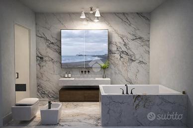 L'immobile in progetto si sviluppa tutto su di un unico livello ed è composto dall'ingresso in disimpegno, l'ampio soggiorno di circa 50 mq con cucina abitabile a vista, il ripostiglio, due camere da letto matrimoniali di cui una con cambina armadio e bagno privato, il bagno ed il bellissimo terrazzo con vista panoramica