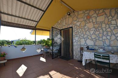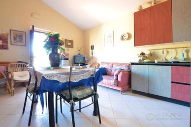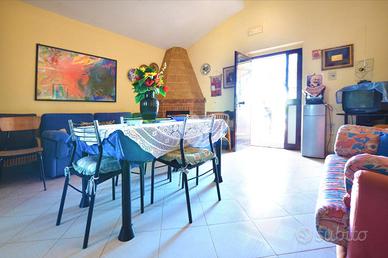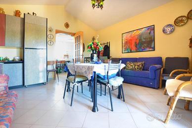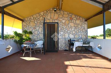 La soluzione presenta un ampio piazzale d'ingresso completamente pavimentato e l'intera proprietà è totalmente recintata. Il vano principale si sviluppa su due livelli, sul primo troviamo un ampia veranda da cui si accede all'interno dove c'è il soggiorno con camino, un cucinino e un bagno completo.