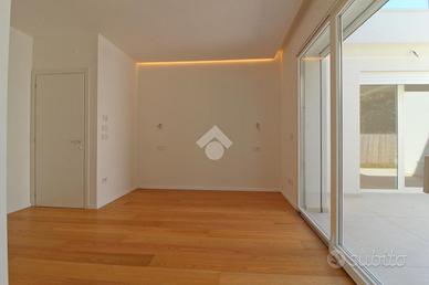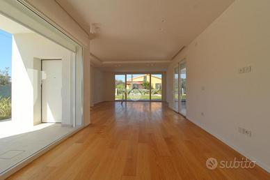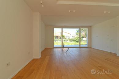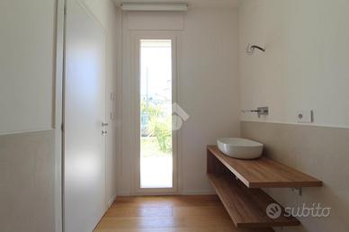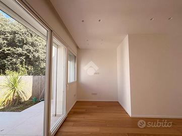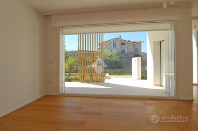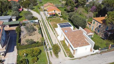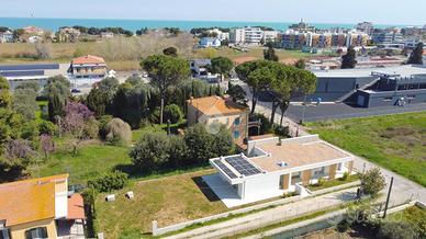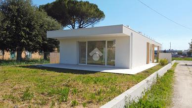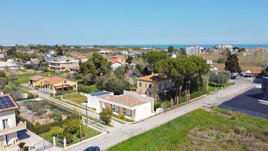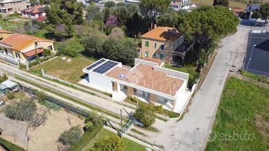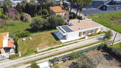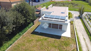 Giulianova Lido - Zona Nord, via Pannella In una delle aree più tranquille e ricercate della città, proponiamo in vendita una villa indipendente di recente costruzione mai abitata, libera su quattro lati, caratterizzata da ampi spazi, tecnologie moderne e comfort abitativo. L'abitazione si sviluppa su un unico livello, con ambienti luminosi e ben distribuiti. La zona giorno accoglie un ampio soggiorno con cucina open space, valorizzato da grandi vetrate con triplo vetro che collegano direttamente agli spazi esterni, creando una perfetta continuità tra interno ed esterno. Completa la zona living una comoda lavanderia e un elegante bagno finestrato in resina con doccia. La zona notte offre tre camere da letto, di cui due con bagno privato, uno rifinito e l'altro personalizzabile con spese a cura del venditore. Tutte le camere hanno accesso diretto alla corte esterna, garantendo luminosità e vivibilità. L'immobile si distingue per finiture e impiantistica moderna: porte filomuro, parquet in rovere naturale, riscaldamento a pavimento con pompa di calore e termostati indipendenti, impianto fotovoltaico da 6 kW con batterie di accumulo per un totale di 15kW, solare termico, colonnina per ricarica auto elettrica, serramenti ad alta efficienza, doppia schermatura con tende elettriche interne ed esterne e tapparelle ventabili, predisposizione per climatizzazione e zanzariere ad incasso, impianto di allarme con videosorveglianza, dati e predisposizione jacuzzi nella camera con esposizione a sud. Gli spazi esterni includono una corte pavimentata e un giardino privato, impianto di irrigazione e illuminazione temporizzata e predisposizione per piscina e doccia esterna. Importante valore aggiunto-la proprietà offre ampie possibilità di ampliamento: - Realizzazione di un piano primo fino a circa 100 mq, con altezza massima complessiva di 9 metri. - Ampliamento al piano terra, nel rispetto delle distanze minime dalla proprietà confinante. Completa la proprietà il lastrico