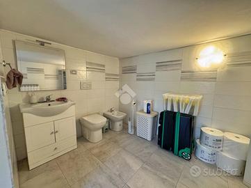 L'ingresso si apre su un ampio e luminoso soggiorno living con travi a vista, la cui generosa metratura consente di ricavare una seconda camera da letto. Completano la zona abitativa una camera matrimoniale e un bagno finestrato con doccia. Al piano interrato trova posto una comoda lavanderia e cantina