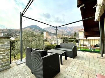 Al piano superiore troviamo due camere, un accogliente salottino, un secondo bagno e un terrazzo con una splendida vista panoramica.