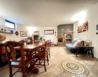 L'abitazione si sviluppa su più livelli: al piano terra si accede da un ingresso su un ampio e luminoso salone doppio, seguito da una cucina abitabile, una camera da letto matrimoniale ed un bagno con il box doccia.