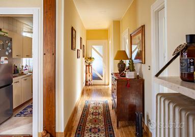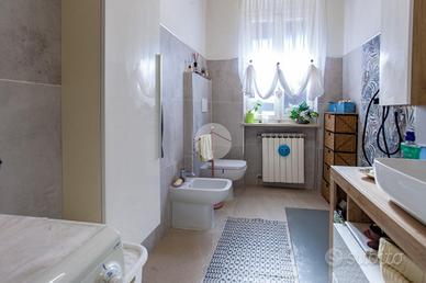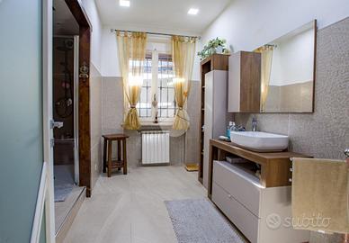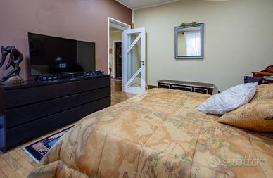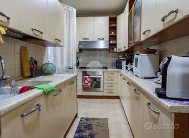 L'ingresso si apre su un soggiorno doppio molto luminoso, dotato di canna fumaria. La cucina è funzionale, ben distribuita e separata dalla zona giorno. La zona notte comprende tre camere da letto matrimoniali di metratura superiore alla media, tutte sullo stesso livello, caratteristica rara per immobili di questa tipologia. Completano il piano i due bagni finestrati e un comodo ripostiglio.