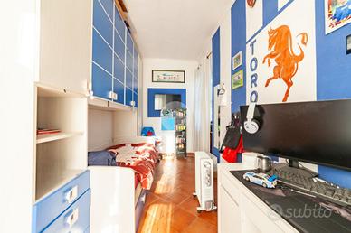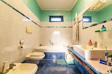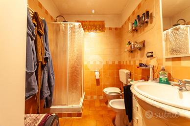 Dal vano scala centrale si sale al piano superiore, dove si trovano un salottino, il secondo bagno con vasca e due camere da letto, entrambe affacciate su un balcone esposto a Sud, con vista aperta e molto gradevole.