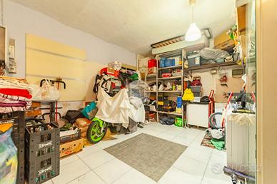 L'ingresso al piano terreno conduce alla zona giorno, organizzata con cucina di ampia metratura, luminosa e con angolo cottura dedicato, bagno e locale lavanderia/deposito ricavato nel box auto. Quest'ultimo, grazie all'accesso interno diretto, può essere oggetto di cambio di destinazione d'uso per ottenere un ulteriore vano abitabile.