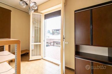 l'ingresso conduce all'ampio soggiorno, separato dalla cucina abitabile; la zona notte ospita due camere da letto matrimoniali e un bagno finestrato.