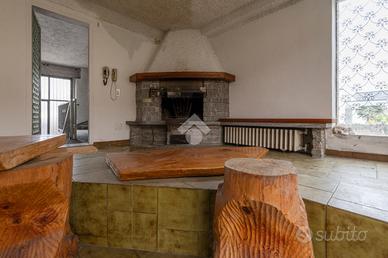 Collegato internamente dalla cucina, il piano terra si presenta come un ampio locale open-space con grandi vetrate, camino e zona bar, ideale come taverna o ambiente ricreativo. A completamento, un bagno finestrato con doccia e vasca che può essere utilizzato anche come lavanderia.