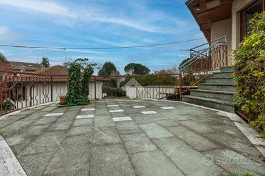 Esternamente troviamo un grande giardino privato che circonda l'abitazione e un box doppio con tettoia.