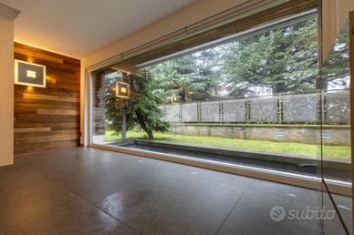 Proponiamo in vendita una villa di prestigio realizzata nel 2014, progettata per offrire il massimo in termini di tecnologia ed eleganza, dove ogni dettaglio è stato scelto con cura e con materiali di assoluto pregio. La villa si distingue per le sue dotazioni tecnologiche all'avanguardia: riscaldamento a pavimento, pompa di calore, impianto geotermico, pannelli solari, sistema di allarme e finestre domotizzate. Gli interni sono valorizzati da uno splendido pavimento in rovere, da rivestimenti in marmo e da arredi Poliform, espressione dell'eleganza del design italiano contemporaneo, capaci di coniugare estetica, funzionalità e qualità senza tempo.Gli ambienti sono armoniosi e pensati per un vivere quotidiano esclusivo, in cui comfort e stile si fondono in modo naturale. L'ingresso introduce a un ambiente accogliente, dal quale si accede alla zona giorno, caratterizzata da un doppio soggiorno impreziosito da una scenografica parete rivestita in legno e da una grande vetrata a tutta altezza che regala una vista suggestiva su uno specchio d'acqua esterno, concepito come un vero e proprio giardino zen, creando un dialogo continuo tra interno ed esterno. La cucina, separata da eleganti serramenti scorrevoli, dialoga con il living mantenendo funzionalità e continuità visiva. Completa il piano un bagno di servizio con disimpegno attrezzato a parete e l'accesso diretto al giardino esterno, pensato come naturale estensione degli spazi interni. Una scala illuminata da faretti accompagna alla zona notte, dove trovano spazio due camere da letto, un ripostiglio attrezzato con lavabo e armadiatura su misura, utilizzabile anche come lavanderia, e una camera matrimoniale di generose dimensioni, dotata di cabina armadio e bagno privato con doccia walk-in. Dalla suite si accede inoltre a un balcone ad uso esclusivo. Il disimpegno è valorizzato da una libreria su misura con postazioni studio, perfettamente integrate. Al piano seminterrato si sviluppa un'ampia area relax/taverna di...