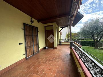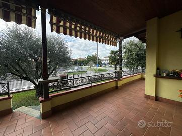 La villa gode di doppio accesso carrale e due unità abitative indipendenti: