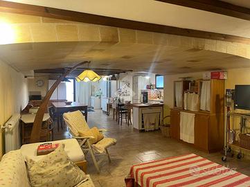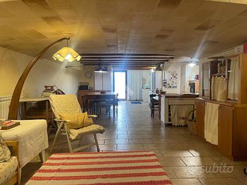 All'interno, una zona giorno luminosa con camino, angolo cottura e bagno di servizio, perfetta per rilassarsi in ogni stagione.