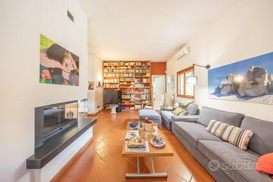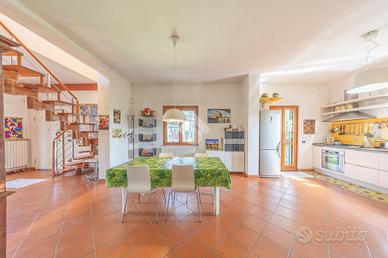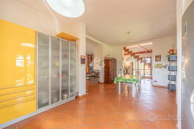 Luminoso, spazioso, confortevole, il soggiorno presenta un'ampia sala con cucina a vista comodamente separata dalla zona giorno da uno splendido camino dallo stile moderno. Gli ambienti all'interno di questa soluzione sono stati creati per garantire il massimo della funzionalità e della praticità a tutti i componenti della famiglia. Il piano si completa infine di un grande bagno con cabina doccia.