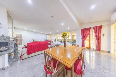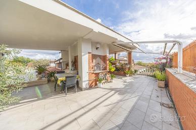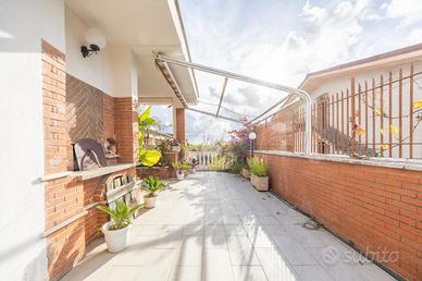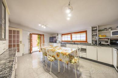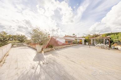 Circa 200 mq interni, la villa si compone di un comodo disimpegno, un luminoso salone doppio ed una cucina separata del tutto vivibile. E' possibile accedere al grande terrazzo di proprietà grazie alla presenza di due porte finestra, una posizionata un soggiorno, e l'altra direttamente in cucina.