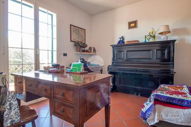 L'accesso alla villa è su un ampio piazzale privato dove è possibile posteggiare diversi mezzi.