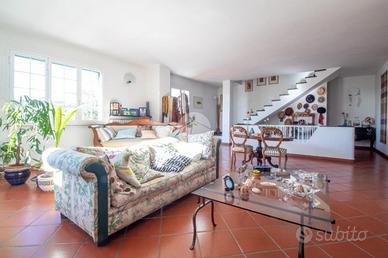Al piano superiore sono presenti un ampio salotto con uscita sul terrazzo, la cucina abitabile, uno studio e il bagno.