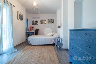 Il secondo e ultimo piano è composto da tre camere da letto, di cui una con bagno privato, un bagno comunque e due ampi terrazzi da cui si può scorgere il mare.