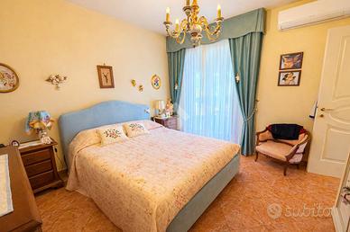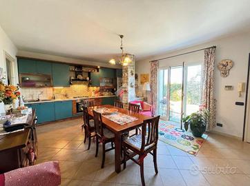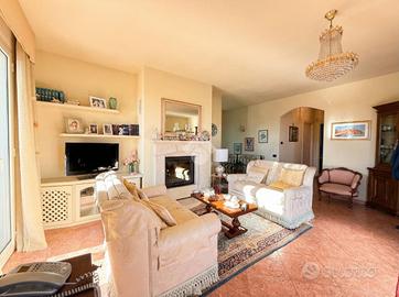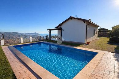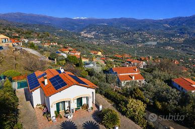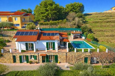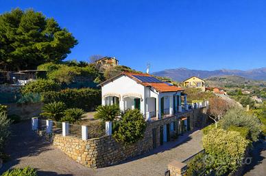 Villa indipendente con piscina e vista mare a Poggi - Imperia In posizione panoramica e riservata nella località Poggi, a circa 3 km dal mare, proponiamo in vendita una villa unifamiliare con piscina privata, giardino e splendida vista mare aperta. La proprietà è inserita in un contesto residenziale tranquillo ed è ideale sia come abitazione principale sia come casa vacanze di qualità. La villa si sviluppa su due livelli con ingressi indipendenti, per una superficie complessiva di circa 230 mq. Il piano principale ospita un ampio e luminoso salone con camino, una cucina abitabile, una camera da letto con accesso al terrazzo panoramico e un bagno finestrato con vasca idromassaggio. Il piano inferiore, collegato internamente, è composto da un secondo salone con angolo cottura, due camere matrimoniali, un bagno con doccia, lavanderia, cabina armadio e locali di servizio, con uscita diretta sul giardino. All'esterno la proprietà è circondata da circa 1.000 mq di terreno, organizzato in più fasce, con piscina privata 8 x 4 metri, zona relax, area barbecue con cucina esterna, camino e forno a legna. La villa è dotata di impianti moderni ed efficienti, tra cui pannelli fotovoltaici da 9,2 kW, riscaldamento a pavimento con pompa di calore, serramenti con doppi vetri, impianto di allarme, aria condizionata nelle camere e garage con porta automatica. I consumi di gestione risultano particolarmente contenuti. Soluzione ideale per chi cerca una villa indipendente con piscina e vista mare in Liguria, a pochi minuti dalle spiagge e dai servizi di Imperia.