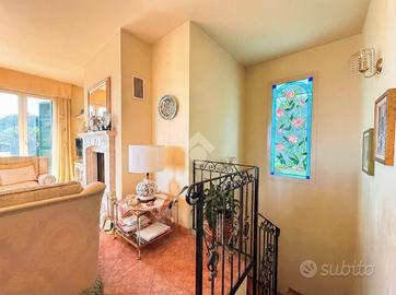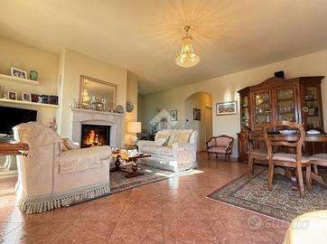 La villa si sviluppa su due livelli con ingressi indipendenti, per una superficie complessiva di circa 230 mq. Il piano principale ospita un ampio e luminoso salone con camino, una cucina abitabile, una camera da letto con accesso al terrazzo panoramico e un bagno finestrato con vasca idromassaggio. Il piano inferiore, collegato internamente, è composto da un secondo salone con angolo cottura, due camere matrimoniali, un bagno con doccia, lavanderia, cabina armadio e locali di servizio, con uscita diretta sul giardino.