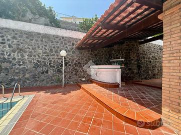 A Ischia, nella riservata e verdeggiante via Arenella, si nasconde una villa che profuma d'estate e racconta storie di relax e giornate al sole. La zona è perfetta per chi cerca quiete e privacy, ma non vuole rinunciare alla comodità di essere a pochi minuti dal centro e dal mare. Un contesto residenziale, immerso nel verde, dove il tempo sembra rallentare. La villa si sviluppa su due livelli, pensati per accogliere e stupire. Il primo piano è dedicato alla zona giorno: entrando si viene accolti da un ampio soggiorno, una cucina luminosa e un bagno. Tutto è circondato da grandi terrazzi che si aprono verso l'esterno, dove la protagonista è lei: una piscina privata interrata, perfetta per rinfrescarsi nelle giornate più calde, prendere il sole in totale tranquillità o semplicemente godersi un angolo di felicità con chi si ama. Scendendo al piano terra si accede alla zona notte, composta da tre camere da letto spaziose e due bagni. Anche qui la casa si apre verso l'esterno, tra giardini e terrazzi che regalano angoli di verde, silenzio e intimità. Questa villa è il luogo ideale per chi sogna una casa ad Ischia che sia accogliente, indipendente, e soprattutto autentica. Una casa dove ogni dettaglio racconta il piacere di vivere l'isola tutto l'anno.