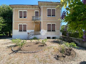 In posizione centrale e comoda a tutti i principali servizi, proponiamo in vendita una villa singola in stile Liberty, edificata su un lotto di terreno di mq. 640 circa. L'abitazione, caratterizzata da ampie metrature e finiture d'epoca risalenti ai primi del '900, si sviluppa su 2 livelli fuori terra, oltre a un piano interrato. Al piano terra di mq. 145 circa, troviamo un ingresso, un luminoso soggiorno, cucina abitabile con retrocucina, due spaziose camere matrimoniali, un bagno ed un locale pluriuso che affaccia sul retro dell'abitazione. Una scala interna conduce al piano primo, di mq. 140 circa, dove si sviluppano ulteriori quattro ambienti, un secondo bagno oltre a un balcone ed una splendida terrazza. Completano la proprietà una cantina al piano interrato di mq. 52 circa e, sul retro dell'abitazione, un'area del giardino ideale per la realizzazione di posti auto privati. Una residenza unica, perfetta per chi è alla ricerca del fascino senza tempo, unito alla comodità dei servizi cittadini. Grazie alle generose metrature l'abitazione è ideale anche per creare 2 unità abitative.