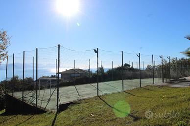 Ispani, a soli 2,5 km dalla splendida spiaggia di Capitello, si propone una villa indipendente su due livelli immersa nella tranquillità, con una vista mare mozzafiato. Al primo piano si apre una luminosa cucina open space, accogliente e funzionale, che si affaccia direttamente su un ampio terrazzo panoramico, perfetto per pranzi all'aperto, momenti di relax e convivialità con lo sfondo del mare. La zona notte è composta da tre spaziose camere matrimoniali, studiate per offrire comfort e privacy, e da due bagni ben organizzati, ideali per soddisfare le esigenze di tutta la famiglia o degli ospiti. Al piano terra, a servizio della casa, troviamo quattro ampi locali deposito con due bagni. All'esterno, la villa è circondata da un grande giardino, in parte pavimentato per i posti auto, che ospita una piscina privata e un campo da calcetto illuminato, spazi pensati per il divertimento, lo sport e il relax all'aria aperta in ogni momento della giornata. La proprietà si distingue per il suo contesto riservato e panoramico, rappresentando la soluzione ideale per chi desidera vivere o trascorrere le vacanze in un ambiente esclusivo, a contatto con la natura, senza rinunciare a comfort, privacy e a una vista spettacolare sul mare
